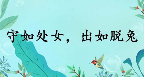 成语解释 | 处女:未嫁的女子;脱兔:逃跑的兔子。指军队未行动时象未出嫁的姑娘那样持重;一行动就象飞跑的兔子那样敏捷。 |